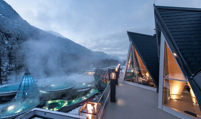 Alp manzaralarıyla çevrili lüks bir termal deneyim.
