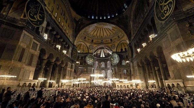Ayasofya Camisi'nin, İslam ve insanlık tarihinde önemli bir yerinin olduğunu anımsatan Erbaş, "481 yıl boyunca burada fetihten itibaren Müslümanlar birlikte kıyama durdu. Birlikte rüku etti, birlikte secde etti. 86 yıl aradan sonra 24 Temmuz 2020 yılında elhamdülillah yeniden ibadete açıldı. Cenabıhak, Cumhurbaşkanımızdan razı olsun. Onun sayesinde bugün burada hep birlikte ibadet ediyoruz, namaz kılıyoruz. Rabb'im kendisine hayırlı, uzun ömürler nasip eylesin." ifadesini kullandı.