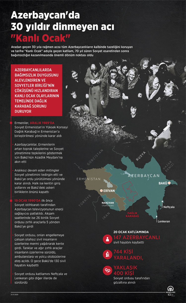 Azerbaycanlılarda bağımsızlık duygusunu alevlendiren ve Sovyetler Birliği'nin çöküşünü hızlandıran Kanlı Ocak olaylarının temelinde Dağlık Karabağ sorunu bulunuyor.