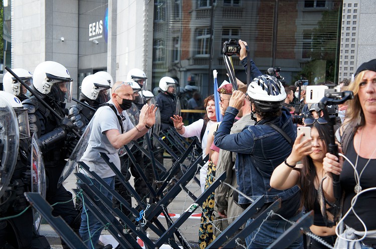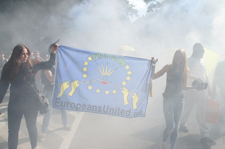 Avrupa'nın çeşitli ülkelerinden gelen ve Belçika'nın başkenti Brüksel'in en büyük parklarından Bois de la Cambre'da toplanan bazıları asker üniformalı yüzlerce kişi, buradan Avrupa Birliği kurumlarının bulunduğu Schuman Meydanı'na kadar yürüdü.