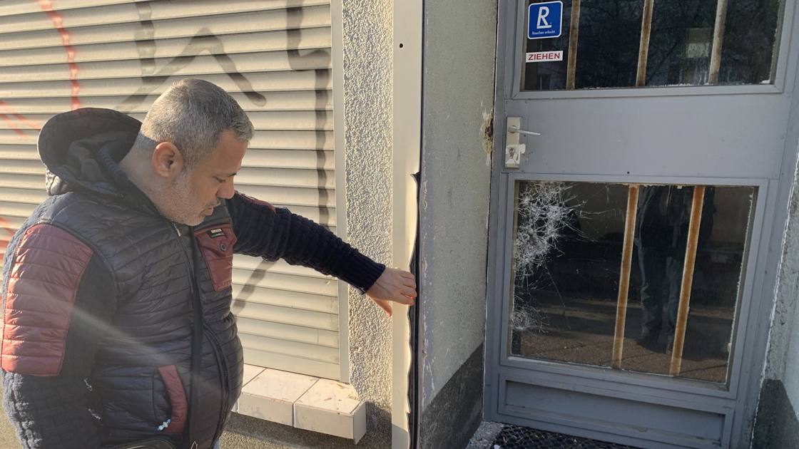 Berlin polisinin yaptığı açıklamada, Friedrichshain semtindeki Koppen Caddesi'nde bulunan bir döner dükkanına kimliği belirlenemeyen kişilerin girdiği ve yeşil boyayla duvara gamalı haçın yanı sıra "defolun" yazdığı belirtildi.