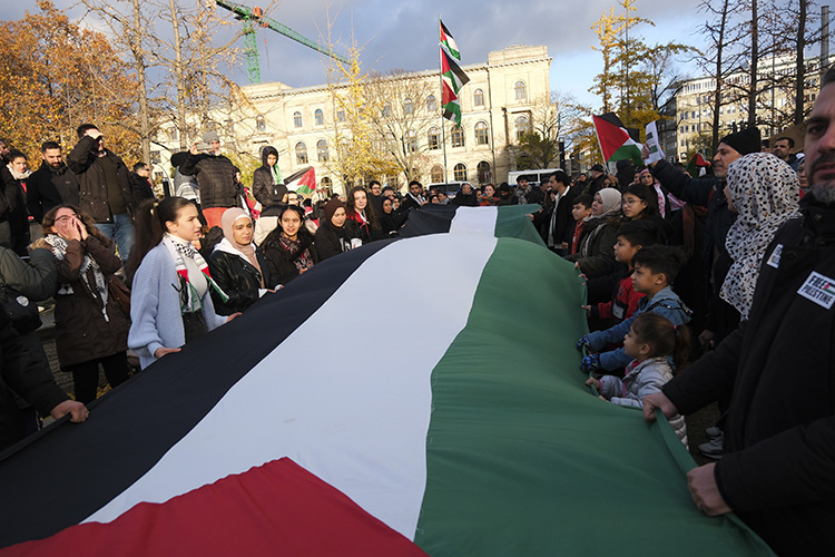 Şehir merkezindeki Invalidenpark'ta toplanan binlerce kişi, İsrail'in Gazze'ye yönelik saldırılarını protesto ederek saldırıların durdurulması çağrısında bulundu.