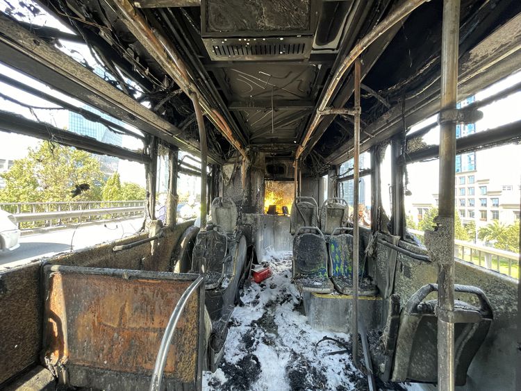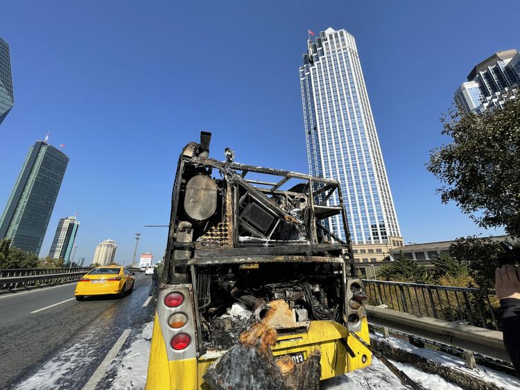 Otobüsün tamamen yandığı olay sırasında Maslak istikametinde ulaşım tek şeritten sağlandı.