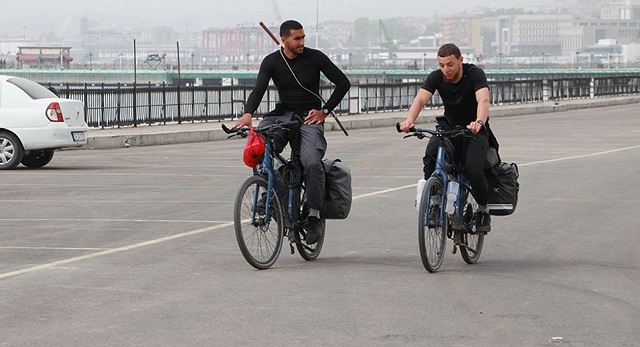 Fransa'da yaşayan Housnı Bedis (24) ve Boudia Sami (26) bisikletiyle bir hafta önce Kapıkule'den Türkiye'ye giriş yaptı.