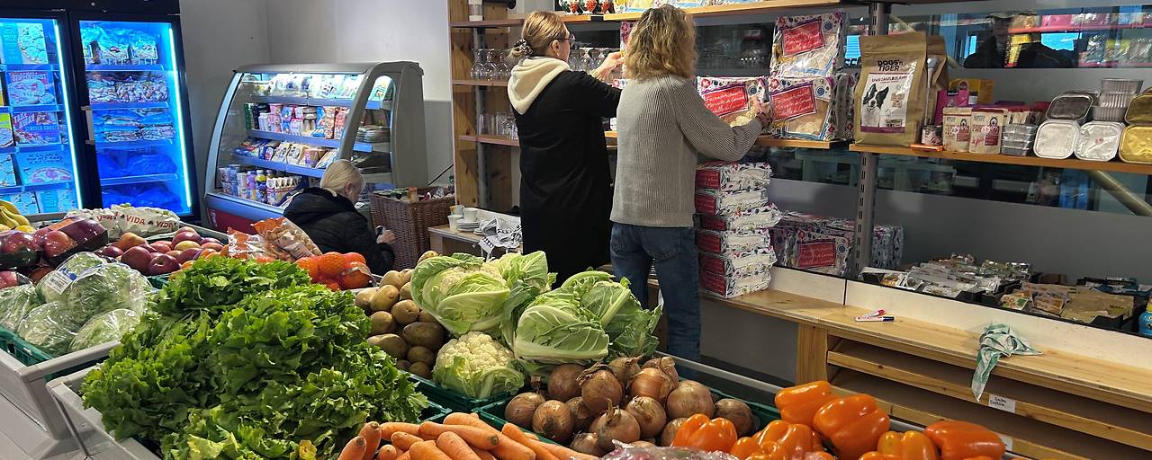 “Mein guter Laden”, tam teşekküllü bir mahalle marketi gibi tasarlandı. Manav reyonunda taze sebze ve meyveler, raflarda makarna, pirinç, ekmek ve hatta evcil hayvan mamaları bulunuyor. Ürünlerin çoğu bağışlardan veya uygun maliyetle tedarik edilen gıdalardan oluşuyor.
