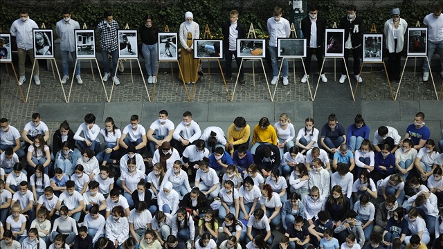 Öldürülen 1601 çocuğu temsilen aynı sayıdaki öğrenci topluluğu, şarkılar eşliğinde performanslarını sergiledi.