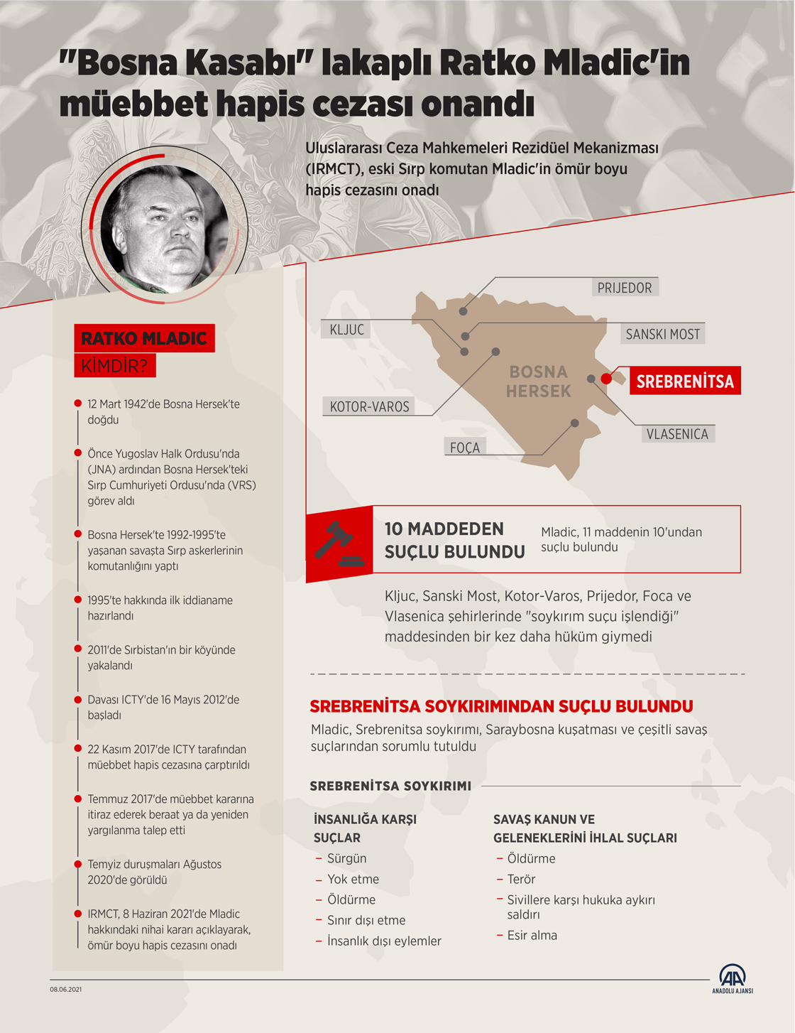 IRMCT, 8 Haziran 2021'de Mladic davasındaki nihai kararı açıklayarak, Mladic'in müebbet hapis cezasını onadı.