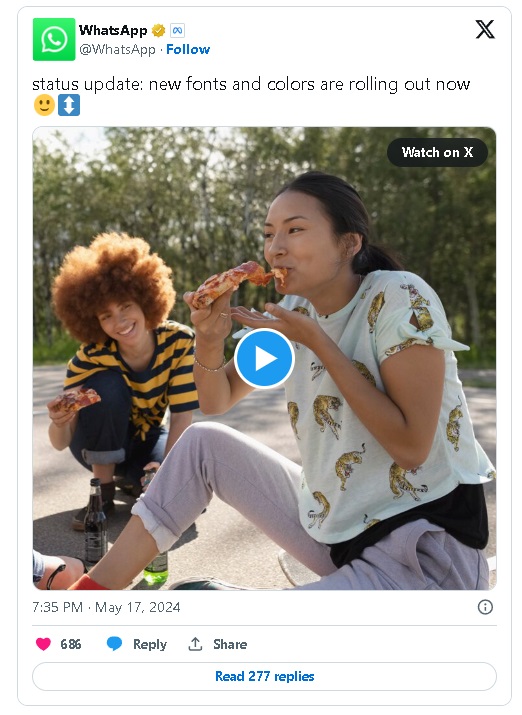 WhatsApp, rakibi Snapchat'ten ilham alarak durumu daha da kişiselleştirmek istiyor. Artık sekiz yeni yazı tipi ve çeşitli renkler kullanılabilir olacak. Bu değişiklikler, Mayıs ortasında X platformunda duyurulmuştu.