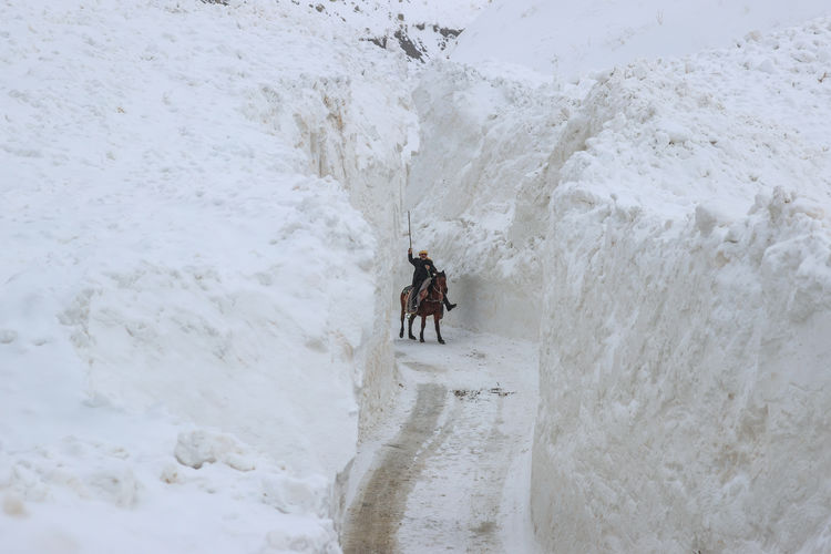 Yüksek dağların yamaçlarından geçen ve farklı noktalarda çığ düşme riski bulunan yolun sürekli kapanması nedeniyle bazen günlerce esaret yaşayan mahalle sakinleri, yolun açık olduğu zamanlarda da ihtiyaçlarını karşılayabilmek için biriken ve yer yer 10 metreyi bulan kar yığınlarının arasında yaptıkları tehlikeli yolculuğun ardından ilçeye ulaşabiliyor.