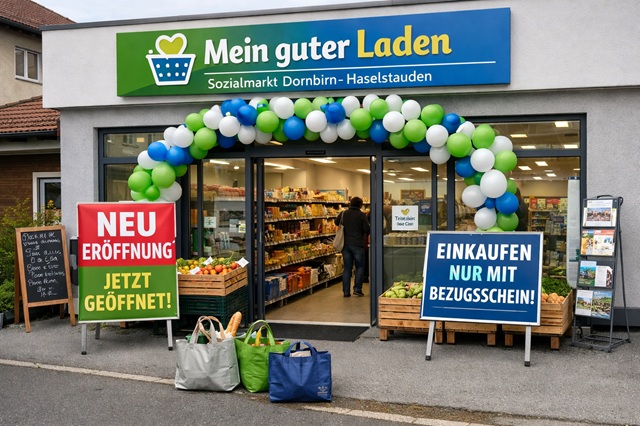 Vorarlberg bölgesinde düşük gelirli kişiler için hizmet veren “Mein Guter Laden” adlı sosyal marketlerin üçüncü şubesi Dornbirn’de açıldı. Gıda ürünlerinin piyasa fiyatlarına göre yüzde 60 ila 70 daha uygun fiyatla satıldığı market, özellikle dar gelirli kesimlere destek olmayı amaçlıyor.