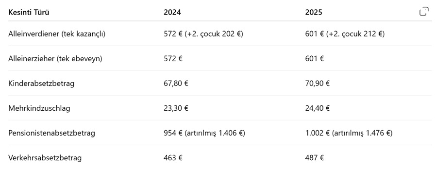 Yeni absetzbetrag (kesinti tutarları) örnekleri