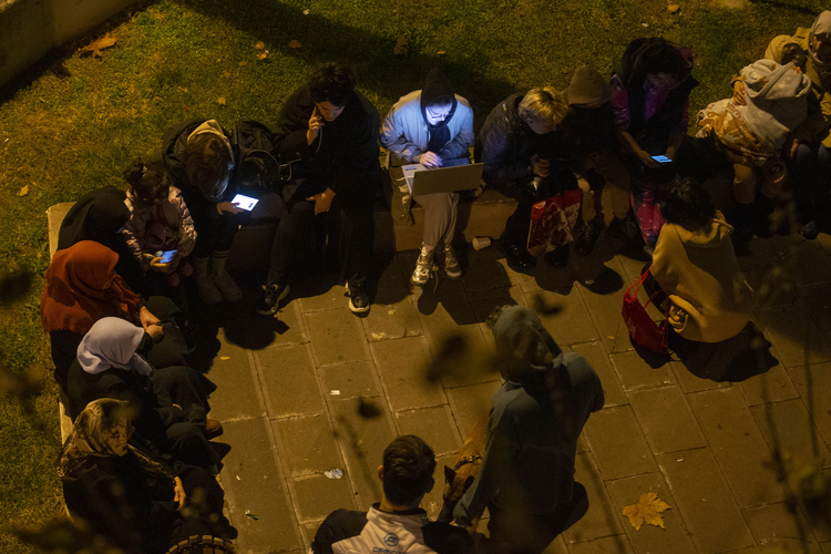 Battaniyelere sarılan vatandaşlar, soğuk hava nedeniyle ateş yakıp ısınmaya çalışıyor.