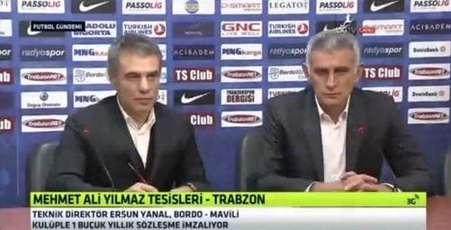 Trabzonspor'un prensipte anlaşmaya vardığı Ersun Yanal, Trabzonspor'a geldi ve kendisini 1.5 yıllığına Bordo-Mavili ekibe bağlayan sözleşmeye imza attı. Ersun Yanal ile İbrahim Hacıosmanoğlu'nun katıldığı basın toplantısında herhangi bir soru alınmadı.