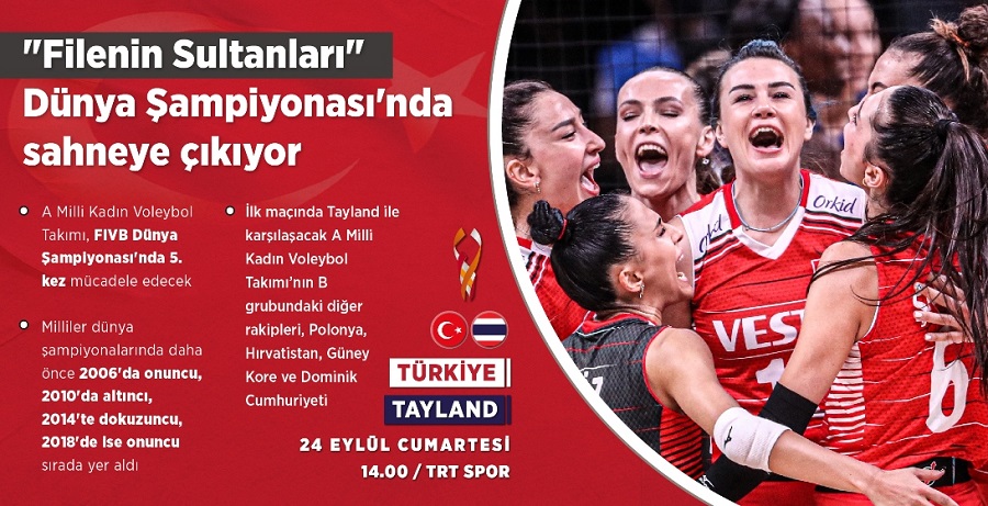 Dünya Şampiyonası'nda 5. kez sahne alacak "Filenin Sultanları", B Grubu'nda Hollanda'nın Arnhem kentinde TSİ 14.00'te başlayacak maçta Tayland ile karşı karşıya gelecek. Maç, TRT Spor'dan naklen yayımlanacak.