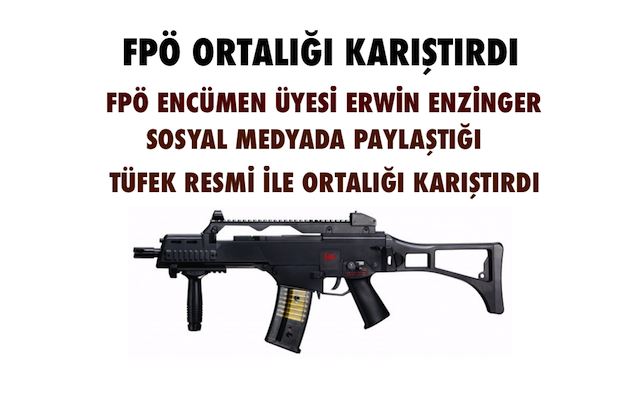 FPÖ'lü meclis üyesi cumartesi günü sosyal paylaşım sitesi Facebook üzerinden yaptığı bir paylaşımda bir tüfek resminin altına, "Alışverişe gidiyorum, her ihtimale karşı" diye yorum attı.