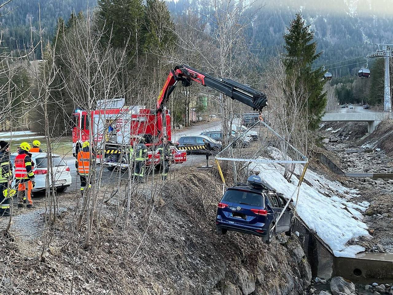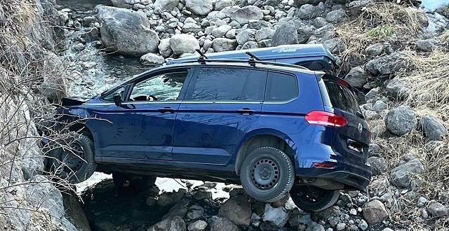 Mellau'da Perşembe günü 51 yaşındaki bir adam, otomobilinin frenlerinin boşalması sonucu sekiz metre derinliğindeki bir dere yatağına düştü. Park etmeye çalışırken araç kontrol dışı yuvarlandı ve uçuruma sürüklendi. Kazada başından yaralanan sürücü hastaneye kaldırıldı.