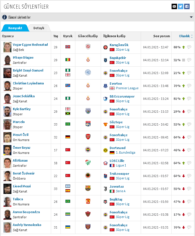 Şu an için basında konuşulan bazı güncel transfer söylentileri:
