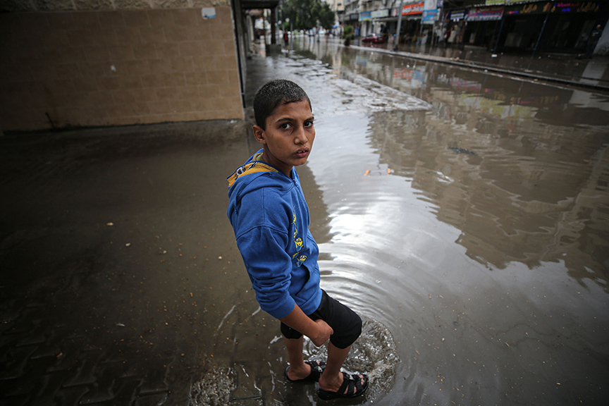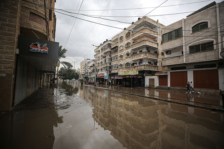 Gazze'de sabah saatlerinde başlayan sağanak yağış nedeniyle caddelerde su birikintileri oluşurken, bazı bölgelerde evleri su bastı.