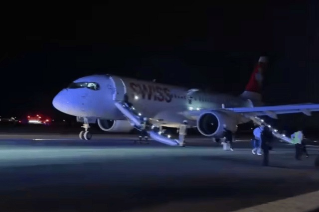 Swiss, "Düşüncelerimiz bu olayı yaşayan yolcu ve çalışanlarımızla. Olayın nedenlerini belirlemek için yerel yetkililerle yakın iş birliği içindeyiz" açıklamasını yaptı.