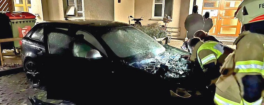 Meçhul failler saat 23:30 civarında Hard Bussardweg'de park hailnde duran bir aracın kaputunun altına havai fişek yerleştirdiler. Kısa süre sonra yoğun bir patlama ile irkilen bölge sakinleri neye uğradıklarını şaşırdılar. Patlamanın etkisiyle büyük hasar gören araç kullanılamaz hale geldi.