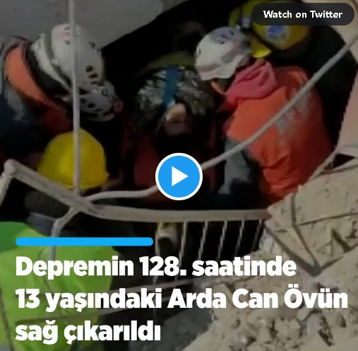 Çocuk, ekiplerin çalışmasıyla enkazdan depremin 128. saatinde çıkarıldı.