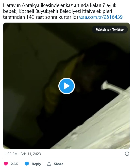 Hatay'ın Antakya ilçesi Kışla Saray Mahallesi Fevzi Çakmak Caddesi'nde yıkılan bir apartmanın enkazından ses geldiğini tespit eden ekipler, çalışmalarını yoğunlaştırdı.
