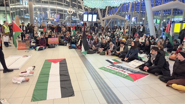 Hollandalı gösterici Leonie van Bruggen, istasyonda yapılan oturma eylemleri ile ateşkes çağrısında bulunarak insanları Gazze'de olup bitenler konusunda bilgilendirdiklerini söyledi.