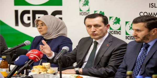"2010 yılında Yurt Dışı Türkler ve Akraba Topluluklar Başkanlığı kuruldu. Bununla da son 3,5-4 yıl içerisinde Avrupa ve dünyanın çeşitli yerlerindeki soydaşlarımız ve vatandaşlarımızla yakından ilgileniyoruz. Onların derdi bizim derdimiz, onların sorunları bizim sorunlarımız. Yurt dışında yaşayan vatandaşların bulundukları ülkelerde en üst konuma gelebilmeleri için hükümet olarak her zaman vatandaşların arkasında olacak ve onların asimile olmadan, dili, dini ve kültürü koruyarak yaşadıkları ülkelerde sadece alt tabakalarda değil orta ve üst tabakalarda da büyük görevlerüstlenmeleri için gerekli desteği sağlayacağız. İnsan odaklı ve ilkeli bir politika izliyoruz ve bundan da hiç bir şekilde taviz vermiyoruz. Bu doğrultuda da inşallah hem yurt dışındaki Türk vatandaşlarımızla, soydaş topluluklarla şimdiye kadar olduğu gibi bundan sonra da yakinen ilgileneceğiz. Onların sorunlarını yaşadıkları ülkelerde en aza indirmek, çözmek için büyük gayretler sarfedeceğiz. IGMG gibi kuruluşların ortak ve beraber hareket etmesini bekliyoruz." dedi.