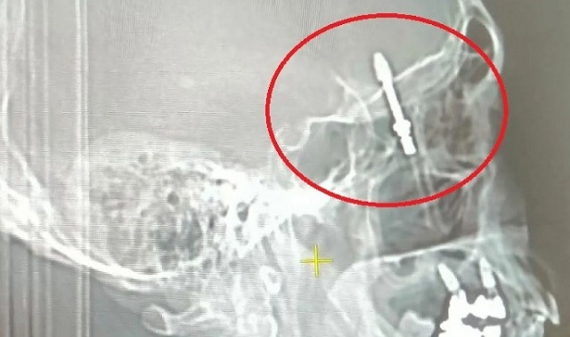 Daha sonra dişlerimi çekip, aynı gün implant uygulaması yaparken, işlemde kullandığı cihazın bozuk olduğunu sekreterine söyledi. Bu kez de işlemi eliyle yapmaya başladı. Vidayı yerleştirmeye çalışırken, aşırı yüklendiğini fark ettim. Bunu kendisine söyledim, kemik sesi geldiğini ifade ettim. Fakat bu kez de bana bunun normal olduğunu söyledi. Ama vidayı zorlarken, vida çene kemiğimi delip göz duvarının arkasından beyin omurilik sıvısının olduğu bölgeye saplandı. Ben acıdan dolayı bağırınca röntgen çektirdi