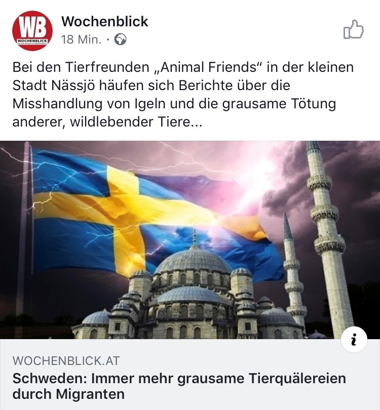 Söz konusu gazete sözde Isveç’te hayvan koruma derneklerinin son zamanlarda ülkede hayvanlara karşı şiddetin arttığını ve bunun en önemli etkeninin göçmen çocuklar olduğunu iddia etti. Haberde, kirpilerin futbol topu gibi kullandığı ve diğer yabani hayvanlarında bu tip işkencelere mağdur kaldıkları yazıldı.