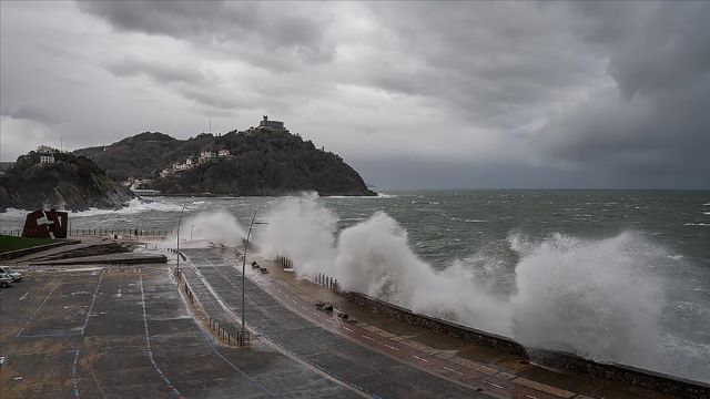 "Kırmızı alarm" verilen ülkenin kuzeybatısındaki Galiçya bölgesinde rüzgarın saatteki hızının 165 kilometreye ve denizdeki dalgaların da 9 metre yüksekliğe ulaştığı belirtildi.