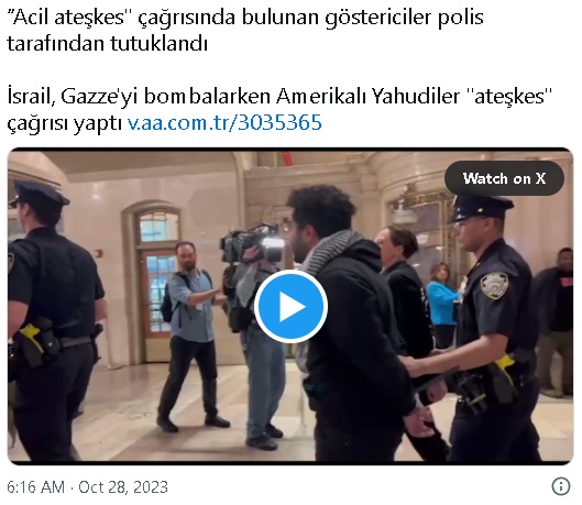 Yahudilere ait JVP ve IfNotNow (Eğer Şimdi Değilse) isimli sivil toplum örgütlerinin sosyal medya platformlarında, protesto ile eş zamanlı olarak, "Halihazırda 7 bin Filistinli öldü ve bir milyondan fazla kişi de yerinden edildi. İsrailli liderler açıkça soykırım söylemini kullanmaya devam ediyor." şeklinde duyurular yapıldı.