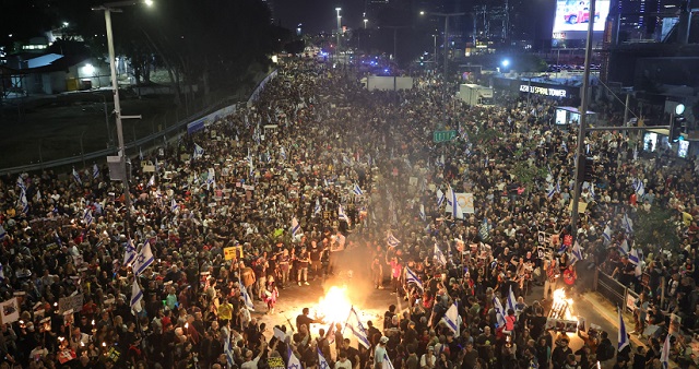 Başkentteki Kirya Askeri Üssü’nde düzenlenen bir başka protesto gösterisinde ise, binlerce gösterici ateş yakarak caddeyi trafiğe kapattı. Göstericiler, “Anlaşma hemen” ve “Savaşı durdurun” pankartları taşıyarak İsrail hükümetine tepki gösterdi.