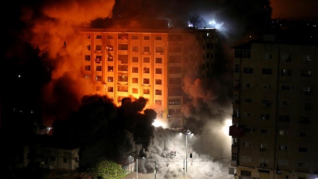İsrail savaş uçakları, Gazze'de sivillerin kaldığı ve basına ait ofislerin bulunduğu 9 katlı binayı da bombaladı.