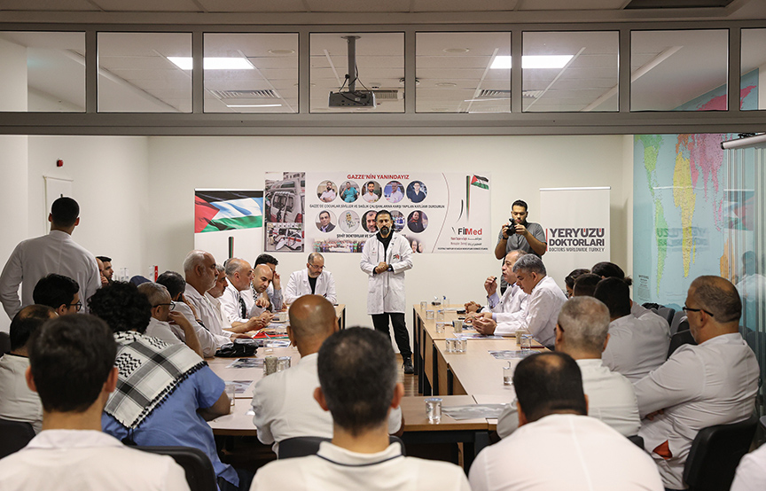İsrail'in 16 gündür Filistinli sivillere bomba yağdırdığını ifade eden Bedri, "Saldırılarda 64 sağlık personeli şehit edilmiş, 7 hastane, 21 sağlık merkezi ve 23 ambulans kullanılamaz hale gelmiştir. Bu katliam büyük bir savaş suçudur." dedi.