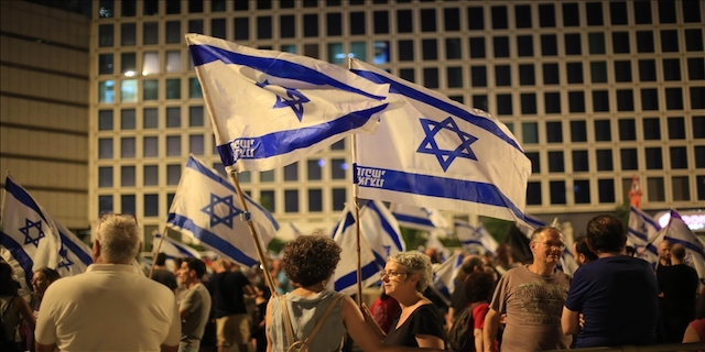 Netanyahu öncülüğündeki aşırı sağcı koalisyon hükümetinin yargı düzenlemesine karşı her hafta cumartesi akşamı kitlesel gösteriler düzenleyen İsrailliler, protestoların 24'üncü haftasında ülke genelinde yine meydanlara indi.