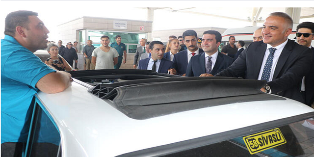Burada ‘Murat 124’ marka aracıyla tek başına seyahat eden Sivaslı Engin Yiğit’le de sohbet eden Bakan Ersoy, araç hakkında bilgi aldı. Yiğit de ‘Murat 124’ tutkunu olduğunu, turkuaz renkli aracının modifiyesi için şimdiye kadar 50 bin TL harcadığını söyledi.
