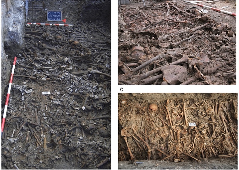 Lazzaretto Vecchio adasında bulunan vebadan ölmüş iskeletler.