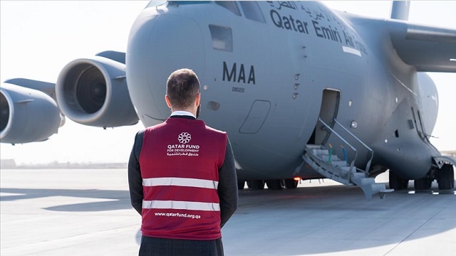 Katar'dan yapılan insani yardımda deprem bölgesine ihtiyaç duyulan battaniye, kıyafet, ilaç, hijyen malzemeleri ve bebek mamaları ile gıda malzemeleri gönderildiği ifade edildi.