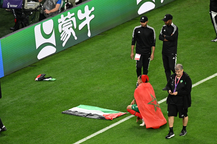 Fas'ın Belçika karşısında 2-0'lık galibiyetinin üzerine Faslı milli futbolcu Jawad el-Yamiq, Filistin bayrağı açarak ülkesinin galibiyetini kutladı.