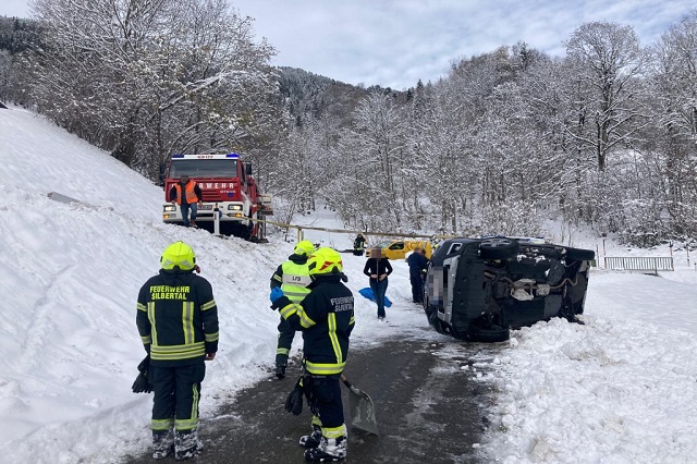 Cumartesi günü Silbertal’da meydana gelen trafik kazasında bir araç kontrolden çıkarak takla attı. Araçta bulunan iki kişi, şans eseri kazadan yara almadan kurtuldu.