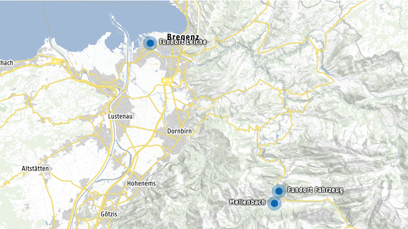 Pazar günü Bregenzerach'ta sürücüsüz halde bulunan aracın ardından, emniyet ekipleri bölgede kayıp sürücüyü arama çalışmaları başlatmıştı. Ceset, Pazartesi günü kaza mahallinin 35 kilometre ötesinde bulundu.