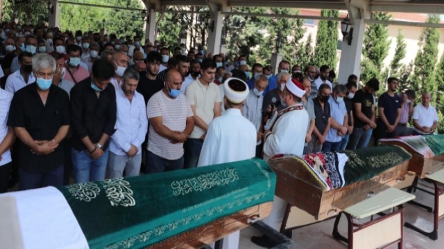 Törene katılan Kızılırmak’ın tatile gelmeyen eşi ve oğlu ise tabutların başında gözyaşı döktü.