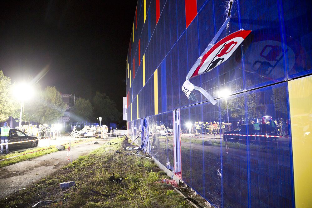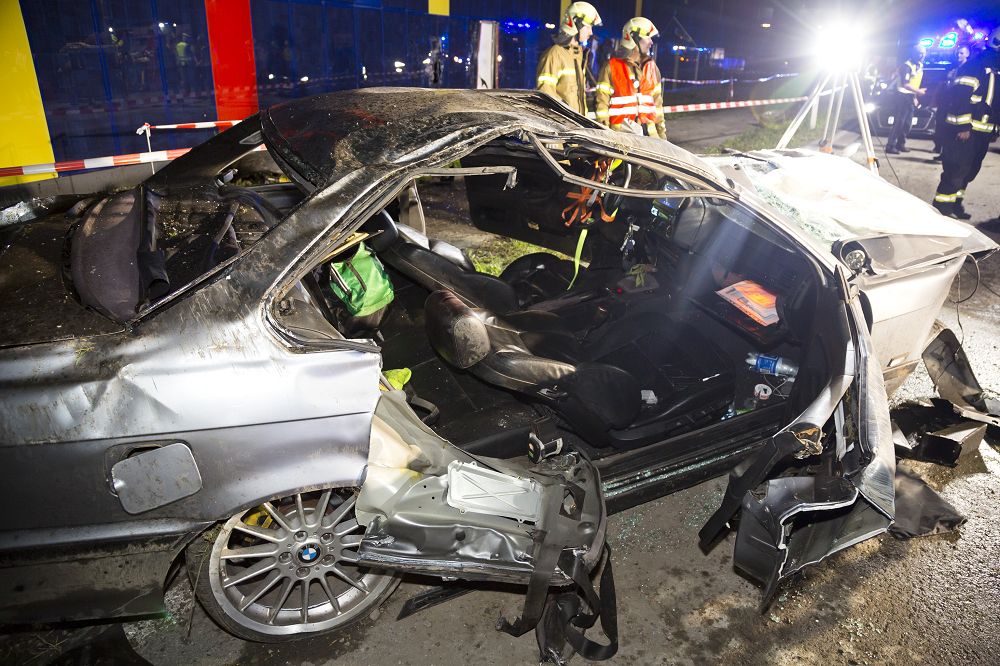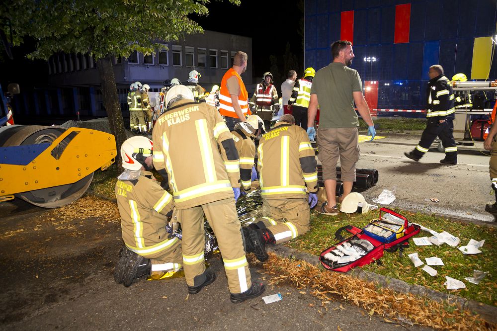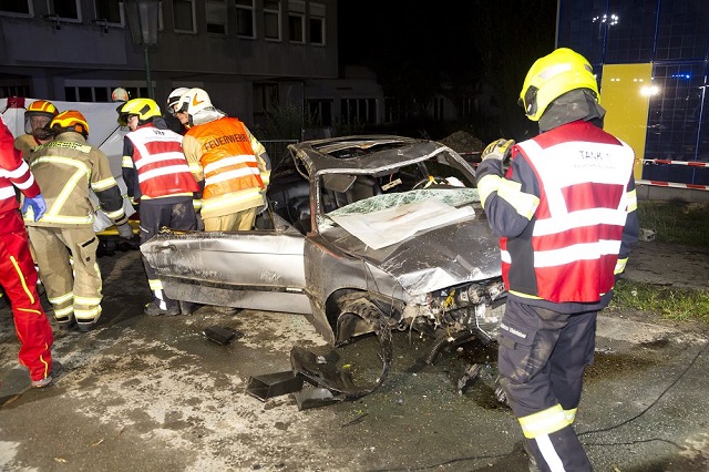 Klaus'ta Treietstraße'de sürücü, tüm inşaat uyarı işaretlerini hiçe sayarak saatte 160 km hızı aşan bir hızla inşaat alanına daldı. Kazılmış asfalt üzerinde kontrolü kaybeden sürücü, önce bir ağaca, ardından bir sokak lambasına ve en son bir firmanın güneş paneli cephesine çarparak durabildi.