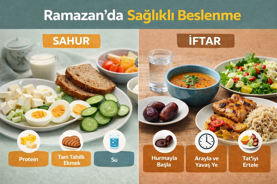Ramazan ayıyla birlikte değişen beslenme düzeni, doğru planlanmadığında halsizlik, kan şekeri dengesizliği ve sindirim sorunlarına yol açabiliyor. Bağcılar Eğitim ve Araştırma Hastanesi Uzman Diyetisyeni Zeynep Yaşar, oruç sürecinde metabolizmayı korumanın yollarını anlattı.