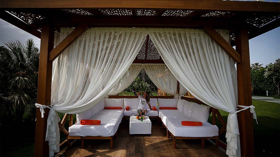 Belek Turizm Merkezinde lüks bir otelin üç villasını kiralayan Rus çift, Kovid-19 nedeniyle ülkelerinde yapamadıkları düğünü ağustosta Antalya'da gerçekleştirmeyi planlıyor.