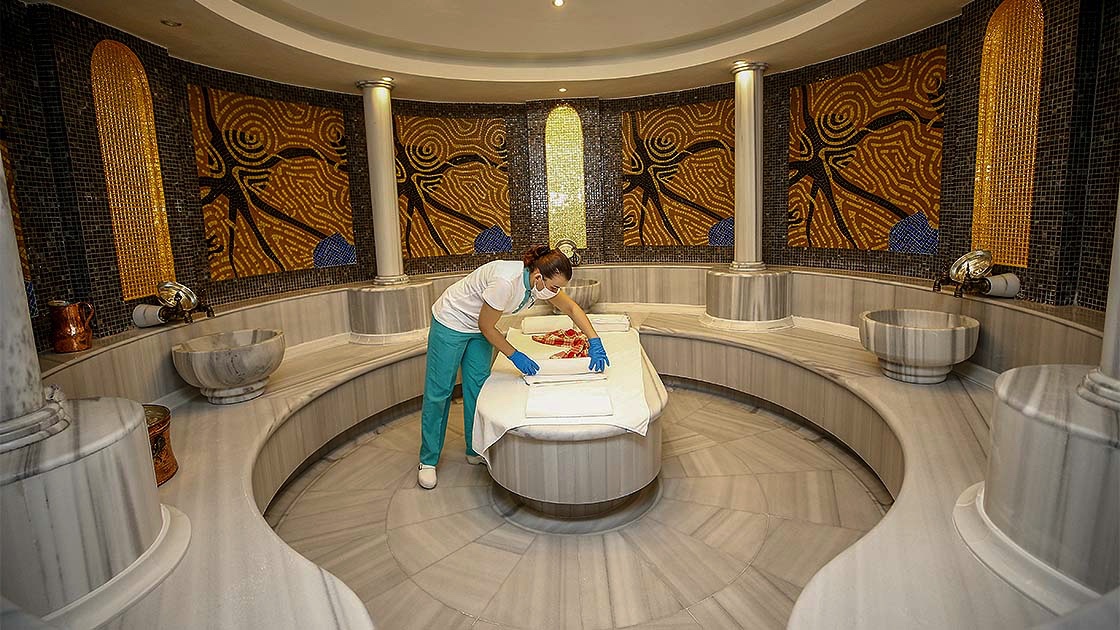 Rus çiftin düğünü için çalışma başlatan otel yönetimi, tesisin farklı bölümlerinde prodüksiyon çekimlerini tamamladı.