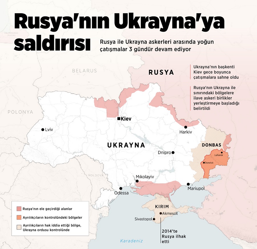Birleşmiş Milletler, Rusya'nın Ukrayna'ya saldırısının ardından ülke içinde 100 binden fazla sivilin yerinden edildiğini, 116 bin sivilin de uluslararası sınırları geçerek komşu ülkelere sığındığını bildirdi.