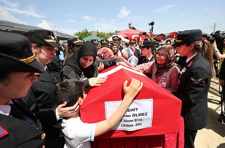Şehit Jandarma Uzman Çavuş Serkan Ölmez (39) için Mersin'in Çamlıyayla ilçesi Körmenlik Mahallesi'nde tören düzenlendi.