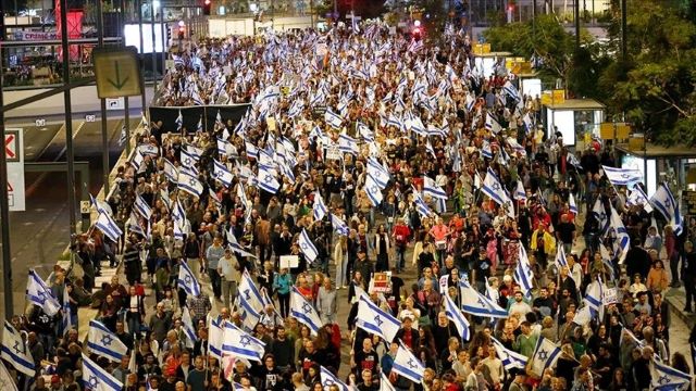 İsrail'de Netanyahu hükümetine karşı her hafta düzenlenen protestolar devam ediyor. Hükümet karşıtı gruplar, Gazze'deki savaş ve esirlerin geri getirilmesi için siyasi iradenin kayıtsızlığı eleştirisiyle ülke tarihinin "en sağcı hükümetinin" istifası ve erken seçim talep eden protestolarını artırdı.